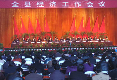 2006年2月10日上午,全縣經(jīng)濟(jì)工作會議在縣體育館隆重召開。這次全縣經(jīng)濟(jì)工作會議的主要任務(wù)是,全面貫徹落實中央和省、市經(jīng)濟(jì)工作會議和縣委十屆七次全體(擴(kuò)大)會議精神,認(rèn)真總結(jié)了2005年經(jīng)濟(jì)工作,表彰了各項先進(jìn),全面部署了2006年各項目標(biāo)任務(wù),進(jìn)一步統(tǒng)一全縣上下的思想認(rèn)識,搶抓機(jī)遇,扎實若干,努力實現(xiàn)全縣經(jīng)濟(jì)又快又好地發(fā)展,構(gòu)建和諧當(dāng)涂,為順利實施“十一五”規(guī)劃開好局、起好步??h長操隆山作了全縣經(jīng)濟(jì)工作報告,縣委書記毛長江發(fā)表了重要講話。縣委、縣人大、縣政府、縣政協(xié)、縣紀(jì)委、縣人武部負(fù)責(zé)同志,縣委委員、候補(bǔ)委員,縣紀(jì)委委員,縣人大常委、政協(xié)常委,曾擔(dān)任縣級實職的離退休老干部,各工委書記,各鄉(xiāng)鎮(zhèn)黨委書記、人大主席,鄉(xiāng)鎮(zhèn)長和文書,各村(居委員)總支(支部)書記、主任和縣直各部、委、局、辦負(fù)責(zé)人、部分機(jī)關(guān)干部代表等共計2000多名干部職工參加了會議。