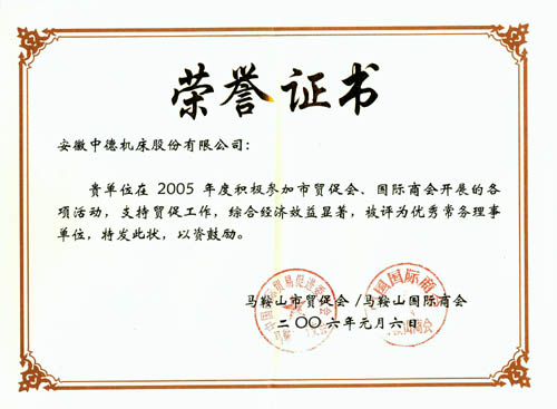 我公司獲2005年度市貿(mào)促會(huì)、國(guó)際商會(huì)優(yōu)秀常務(wù)理事單位