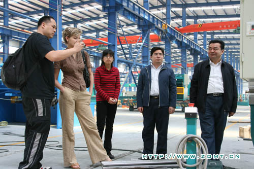 這位波蘭客人對(duì)機(jī)械行業(yè)非常了解,她告訴我們,他們的工廠車間里正在使用歐美品牌的同類機(jī)器,對(duì)其使用和操作流程都非常的熟悉,當(dāng)然,看機(jī)器的眼光也是相當(dāng)?shù)膶I(yè)。這次中德行的目的主要是考察我們公司的大型雙機(jī)聯(lián)動(dòng)折彎?rùn)C(jī)。參觀過(guò)我們的投入使用不久的大型裝配車間后,客人立即表示對(duì)中德的生產(chǎn)規(guī)模和產(chǎn)品質(zhì)量非常的滿意,是一家值得信賴和合作的優(yōu)秀制造商,客人希望以后能夠代理我們的產(chǎn)品以期與我們建立長(zhǎng)期合作的貿(mào)易關(guān)系。