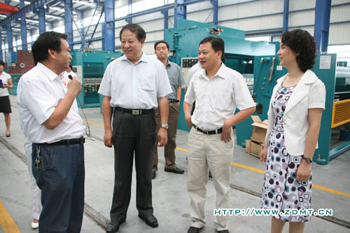 公司董事長鄭長玉向領導一行匯報了中德的發(fā)展歷程及目前的發(fā)展狀況。重點介紹了我公司在車間管理和質(zhì)量監(jiān)督體制方面的完善工作,并從目前的發(fā)展局勢展望更好的發(fā)展前景。王司長也關(guān)切地向公司領導了解一些機器方面的情況,在聽到鄭董事長匯報說中德不會因目前的成績而有絲毫懈怠時,王司長滿意的點了點頭。參觀過大型裝配車間后,領導一行來到了成品車間,擺放在這里的一臺雙機聯(lián)動數(shù)控折彎機迅速地吸引了大家的眼球,鄭董事長向領導介紹說這臺機器已經(jīng)經(jīng)過商檢并即將發(fā)往波蘭并非常自豪地說這位波蘭客商正是看中了中德的實力才會放心的與我們合作。隨后公司總經(jīng)理鄭小平向領導介紹了目前中德的國外代理點及國外銷售情況,表示中德還有非常大的外貿(mào)發(fā)展空間。