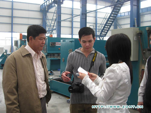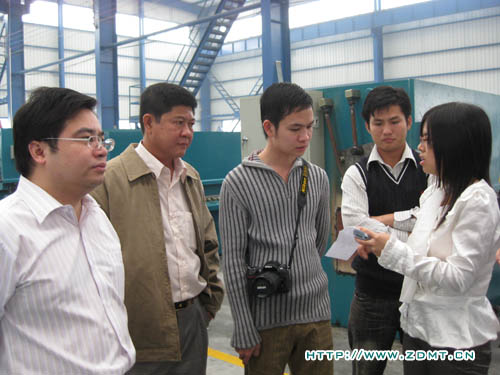 KONG KHEANG先生已經(jīng)跟我們通過網(wǎng)絡和電話聯(lián)系了近一個月,對中德機床表現(xiàn)了強烈的購買需求。此次專程拜訪中德,正是為了洽談有關雙機事宜,順便實地考察。KONG KHEANG先生從事板料加工多年,對機器的操作是輕車熟路,目前自己的工廠里也有幾臺被撕去標牌的中國機床。這一次,實實在在的看到中德的機床以后,光光是機身油漆的光潔,整體的外觀,就使他很激動,親自體驗了一下我們一臺正在調試的折彎機,然后心滿意足的笑了。
