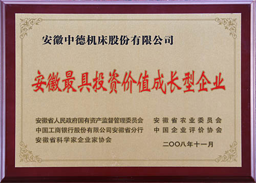 能夠進入2008年安徽最具投資價值企業(yè)的評估百強,是對企業(yè)各個方面的能力的權威肯定,因為評價結果將為各級政府決策提供參考依據(jù),為金融機構、融資機構的企業(yè)信貸決策提供參考依據(jù),為企業(yè)充分展示自身的成長能力、投資價值和戰(zhàn)略合作伙伴提供機會。此次進入“2008安徽最具投資價值成長型企業(yè)百強榜”對于中德機床來說,意義深遠。中德將在技術創(chuàng)新,開辟廣闊市場方面做進一步的努力。