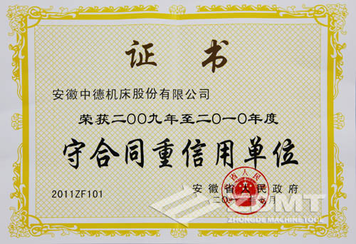 這也是我公司第三次獲得省政府授予的“守合同重信用先進(jìn)單位”稱號,公司不斷發(fā)揚(yáng)“守合同、重信用”的良好傳統(tǒng),不斷探索、潛心經(jīng)營,逐漸建立、健全了一套適合市場規(guī)律和行業(yè)、企業(yè)自身特點(diǎn)的合同管理機(jī)制,強(qiáng)化了合同的管理,確保了合同的履行,呈現(xiàn)出合格率100%,優(yōu)良率85%以上,履約率達(dá)100%的喜人景象,取得經(jīng)濟(jì)效益和社會效益的雙豐收,贏得了社會各界的廣泛認(rèn)可,增強(qiáng)了社會大眾對“中德機(jī)床”品牌的認(rèn)知度,加速了品牌傳播、提升了品牌知名度,樹立了中德機(jī)床公司良好的社會形象。